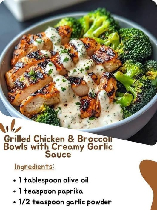 Grilled Chicken & Broccoli Bowls with Creamy Garlic Sauce (Healthy & Easy Meal Prep)